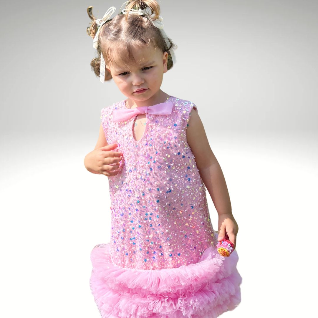 Ein Kleid, das strahlt – genau wie dein kleiner Star! Unser Sparkle Chic Kleid vereint modernen Stil mit mädchenhaftem Charme. Es glitzert bei jeder Bewegung und sorgt so für einen echten Wow-Effekt. Die über-knie-lange Passform ist sowohl bequem als auch stylish und bietet viel Bewegungsfreiheit – ideal für besondere Anlässe oder auch einfach zum Glänzen im Alltag.
