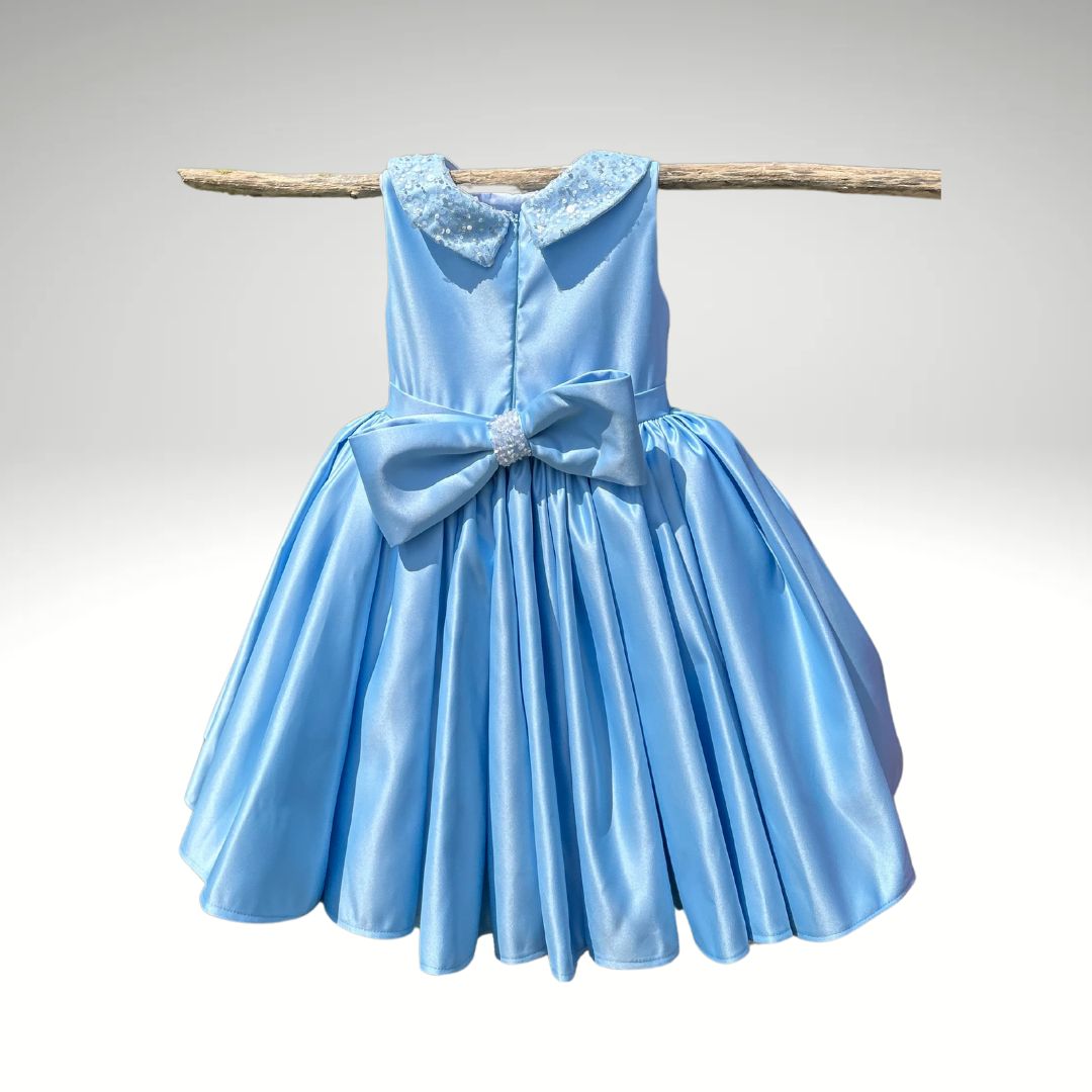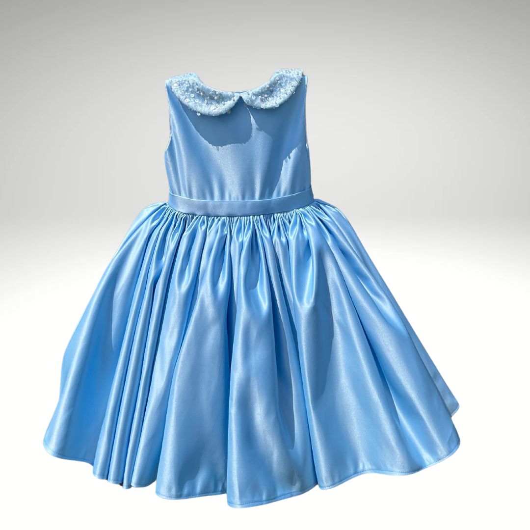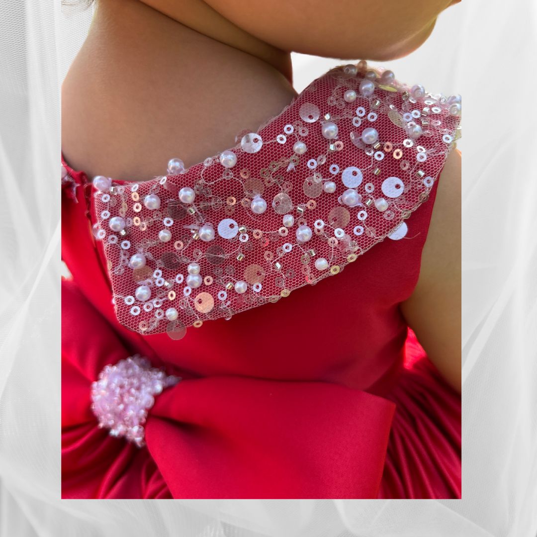 Ein echter Blickfang in leuchtendem Rot – dieses handgefertigte Kleid bringt jede kleine Prinzessin zum Strahlen. Der glänzende Stoff, der süße Schnitt und der mit Perlen verzierte Kragen machen es ideal für festliche Anlässe oder unvergessliche Momente.